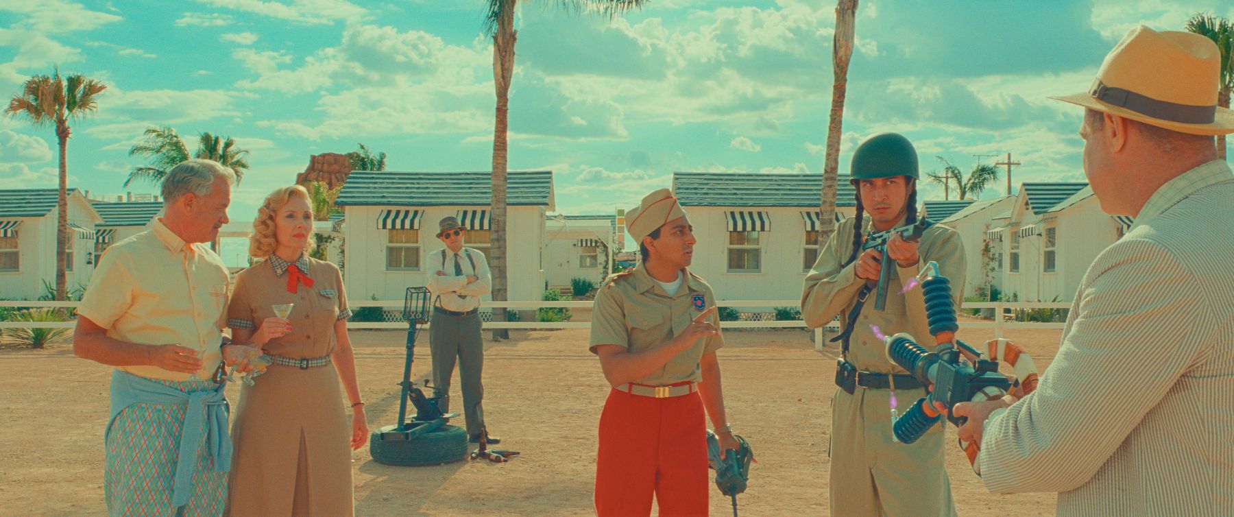 Allein, es wirkt alles noch ausgestellter, manierierter als üblich bei Wes Anderson und es nutzt sich schneller ab, da der Handlungsrahmen so mehrbödig konzipiert wird. Und dann wären da tatsächlich noch die Fragen, warum ein Filmmacher aktuell Atombomben in der Wüste explodieren lässt, oder nach der weltweiten Covid-19-Pandemie eine Truppe von Leuten an einem Ort einpfercht? Die Verweise auf die Realität sind zu offensichtlich, um als bloße abstrakt-künstlerische Kniffe durchzugehen. Schließlich will gute Science-Fiction auch immer die Realität reflektieren. Selbst, wenn das nicht immer ohne Auszeiten gelingt. Oder aber, um den Film zu zitieren: „Du kannst nicht aufwachen, ohne eingeschlafen zu sein.“