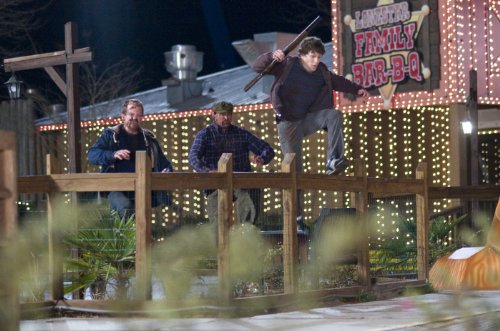 Das „Zombieland“ so überzeugen geworden ist und die Zombiekomödie „Fido“ (2006) locker übertrifft, liegt im Wesentlichen an zwei Aspekten. Zum einen fungiert der sympathische Loser Columbus auch als Off-Erzähler und sorgt mit seinem trockenen Nerd-Humor für einige Schoten. Zum anderen ist Woody Harrelson („Natural Born Killers“, „Larry Flint“) eine Idealbesetzung als robuster Zombiekiller. Mit nöhligen Sprüchen und Spaß an Dezimierung der Untoten ist Talahassee eine Augenweide. Auch wenn er eigentlich nur auf der Suche nach einen Twinkie (eine mit Creme gefüllte Teigrolle) ist. Der Kerl ist einfach unterzuckert.