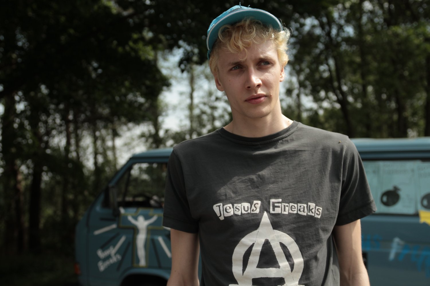 Eigentlich gehen Punk und Religion nicht zusammen. Aber es gibt auch christliche Heavy Metal Bands und Nazi-Punks. Eigentlich auch Dinge, die nicht zusammengehören. In Katrin Gebbes Spielfilmdebut „Tore tanzt“ ist die Hauptfigur, Tore (Julius Feldmaier), ein Jesusfreak. Der christlicher Punk hat sich in Hamburg einer schrägen Truppe ähnlich Gesinnter angeschlossen; Sekte wäre zuviel gesagt. Man und frau stehen auf schnellen Punk-Rock und einer sehr eigenen Interpretation des Christentums.