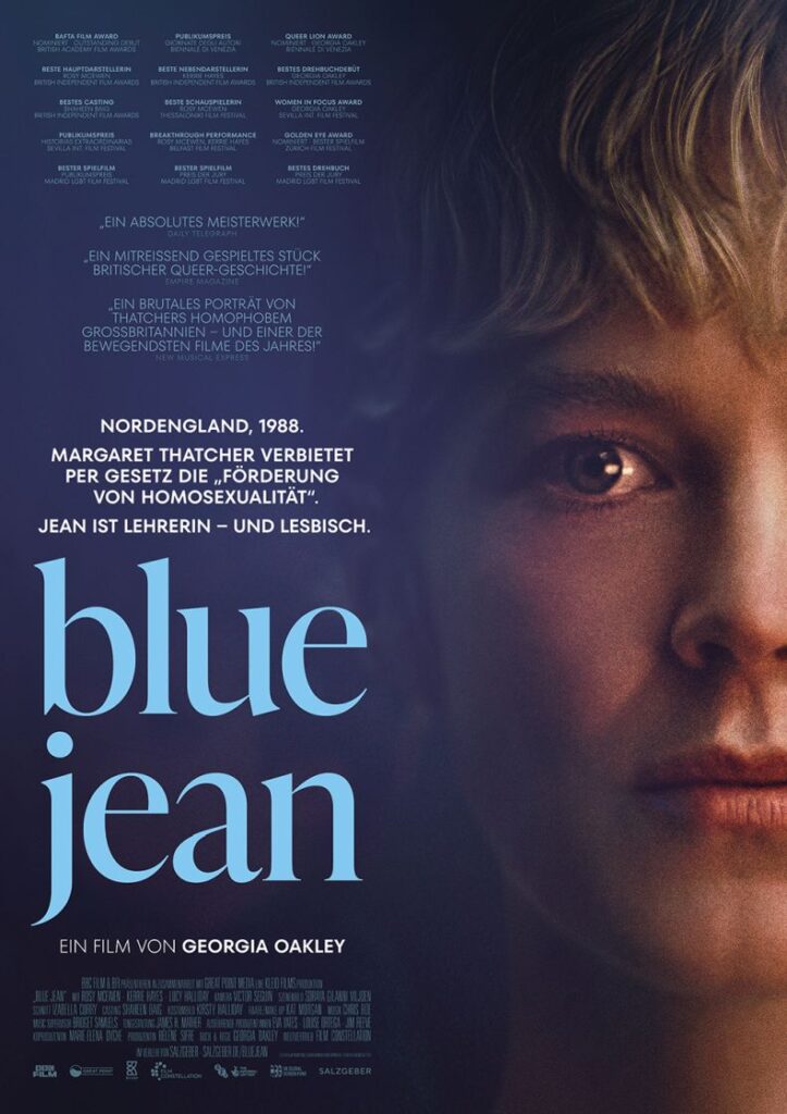 Das heutige Publikum mag sich die repressive gesellschaftliche Stimmung der Thatcher-Jahre nicht mehr vorstellen können. Das lichtlose blaugefilterte Licht trifft die gedrückte Stimmung eindrucksvoll. Auch weicht „Blue Jean“ durchaus ab vom queeren (und auch mainstream-gebräuchlichen) Narrativ, das gerne positive Beispiele und Biografien heranzieht, um über eine starke selbstbewusste Persönlichkeit ein Bewusstsein und gesellschaftlichen Wandel herbeizuführen.