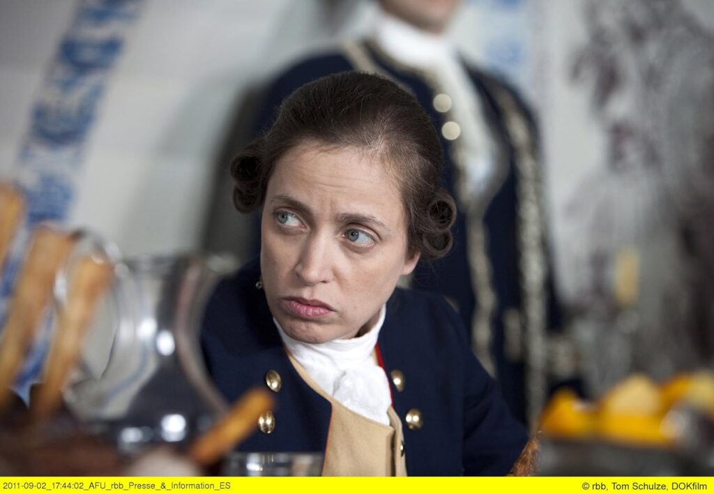 Umso erstaunlicher die Regieentscheidung Friedrich in den Schlüsselszenen seines Lebens von Frauen darstellen zu lassen. Katharina Thalbach verkörpert den Alten Fritz, der nach den Siebenjährigen Krieg wieder in die Heimat zurückkehrt. Ihre Tochter Anna Thalbach spielt den jungen Friedrich, vom aufbegehrenden, fahnenflüchtigen Prinzen bis hin zu den ersten Jahren als Preußischer König. Katharina Thalbach war schon einmal in die Rolle Friedrichs geschlüpft: In der TV-Doku-Reihe „Preußen“, die im Jahr 2001 ausgestrahlt wurde und seit einigen Monaten ebenfalls auf DVD erhältlich ist, mimt sie neben anderen typischen preußischen Gestalten auch Friedrich den Großen.