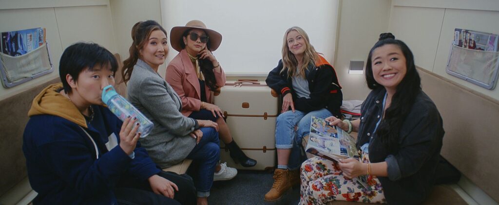 Am Flugplatz gesellt sich noch Lolos Cousine Deadeye (Sabrina Wu) dazu. Ein introvertierter K-Pop-Fan. Und in China besuchen die drei als erstes Audreys Studien-Freundin Kat (Stephanie Hsu), die in zwischen in China ein gefeierter Soap-Opera-Star ist. Ihrem christlich gläubigen Verlobten und Ko-Star hat Kat ihre lebenslustige Vergangenheit allerdings verschwiegen. Gerne schließt sie sich der Reisegruppe an.