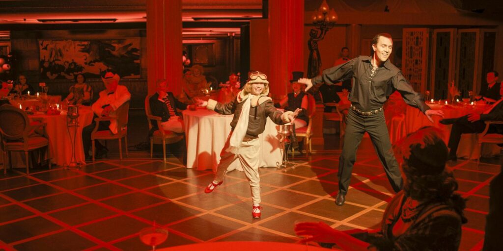 Hier diniert auch Film-und Tanzstar Fred Astair und Ratchs Tochter Gwen will dem Star unbedingt vortanzen. Als dann noch die eigentlichen Gäste auftauchen, deren Plätze die Ratchs eingenommen haben, gerät der Abend vollends aus dem Ruder. Derweil versucht der Kapitän unter allen Umständen und trotz Maschinenproblemen seine pünktliche Ankunft einzuhalten.