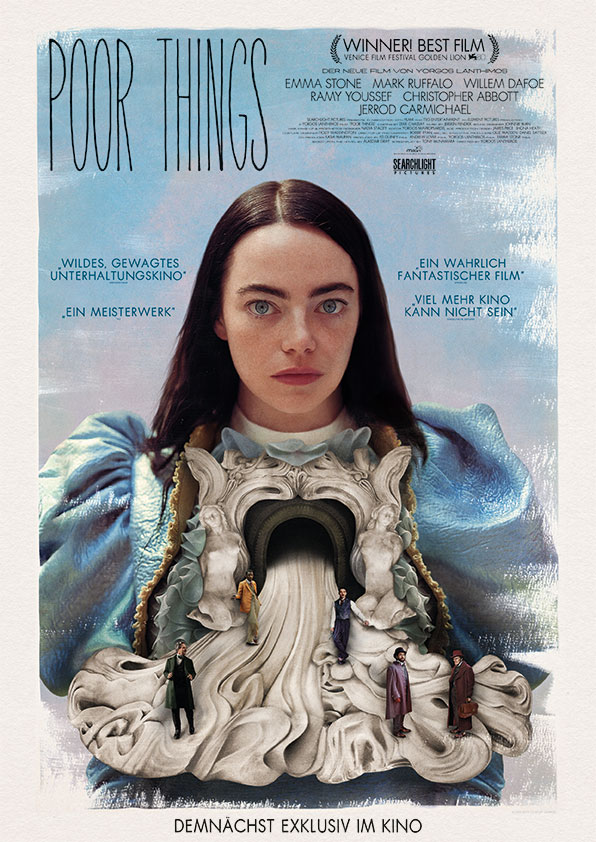 In Yorgos Lanthimos Literaturverfilmung „Poor Things“ macht sich eine seltsame junge Frau auf die Welt zu erkunden. Schauspielerin Emma Stone bewegt sich wagemutig durch diese bizarre, eigenwillig und fantastische Gesellschaftssatire. Das hat durchaus etwas von einem Frankenstein-Mythos, geht aber weit darüber hinaus. Lanthimos findet dafür – wie so oft in seinen gefeierten Werken – drastische Bilder. Das wird nicht jeder Zuschauer:in gefallen. Zu bestaunen ist „Poor Things“ ab dem 18. Januar 2024 in den Kinos.