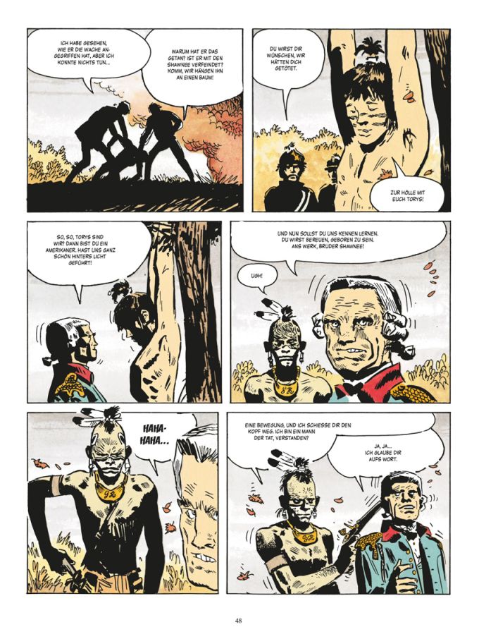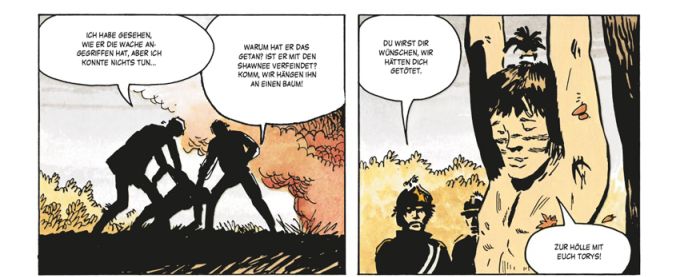Im Wesentlichen hat sich die Abenteuergeschichte der beiden Freunde, die das Schicksal auf verfeindete Seiten eines Krieges verschlagen hat, bereits im ersten Teil verlagert, Hin zu den Wegen und Wirrungen des jungen Amerikaners Criss Kenton. Im Fortgang der Geschichte verstärkt sich dessen unruhiges Getrieben Sein noch weiter. Das beschreibt wahrscheinlich die Realität während des Unabhängigkeitskrieges, der sich scheinbar endlos zieht und die Menschen wie Steppenhexen aka Tumbleweeds im Wind tanzen lässt.