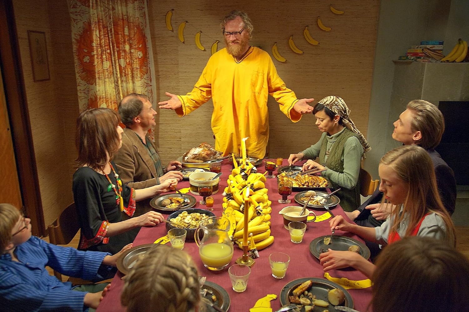 Der junge Nikolaj (Åsmund Høeg) wächst als Sohn antiautoritärer Eltern auf. Vater Magnus (Sven Nordin) ist ein Pfeife schmauchender Altachtundsechziger, der seine hehren, kommunistischen Ideale noch immer zu leben versucht und der als Architekt in der kleinen Stadt sein Geld verdient. Unkonventionell geht es im vierköpfigen Haushalt zu und Weihnachten wird – streng antireligiös, in diesem Jahr mit Bananen gefeiert. Das komplette Menü und die Deko, sogar der Weihnachtsbaum und die Gans sind mit Bananen verziert. Nicht nur Ende der 1970er eine eigenwillige Art zu feiern.