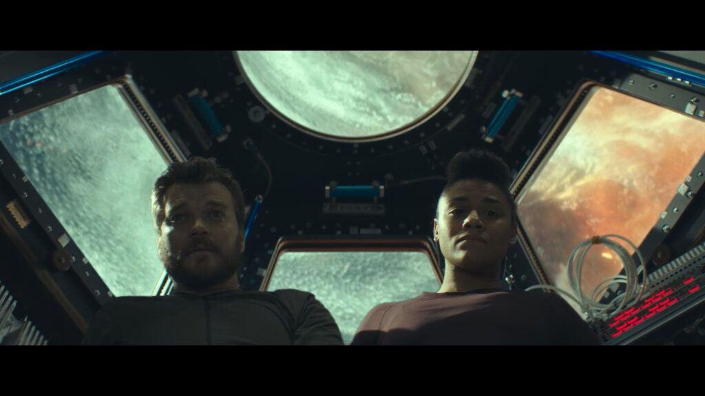 Innerhalb der Raumstation findet ein Stellvertreter-Krieg statt und eine psychologisch spannende Überlebensaufgabe. Es fragt sich allerdings im Verlauf des Films auch, wofür überleben, wenn der Planet doch augenscheinlich gerade platt gemacht wird? Und es fragt sich, was geschehen wäre, hätten sich die Einzelpersonen entschieden, ehrlich miteinander umzugehen?