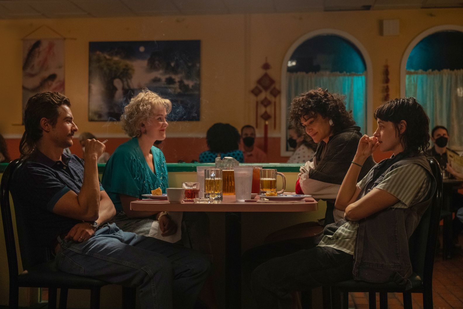 Das ändert sich als Jackie das Gym betritt. Die beiden erkennen sich sogleich und es dauert nicht lange bis die Bodybuilderin bei Lou eingezogen ist. Lou hat auch Präparate für den Muskelaufbau angeboten, die lägen im Gym ohnehin überall rum. Doch dann geht das Paar mit Lous Schwester Beth (Jena Malone) und JJ aus, dem mal wieder die Hand ausgerutscht ist. Und weil Jackie Lous Schwager auch schon kennt, wird der Abend eher bemüht.