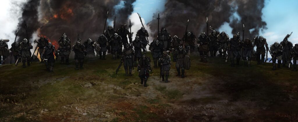 Wobei es mehrere Aspekte zu beachten gibt, die den Filmgenuss beeinflussen mögen. Erstens spielt „Die Schlacht der Rohirrim“ ausschließlich unter Menschenvölkern. Es gibt also bis auf wenige Szenen keine anderen Mittelerde-Bewohner zu sehen. Und weil die Welt der Menschen der Ebenen bei Tolkien durchaus von nordischen Sagen inspiriert ist, geht es weitgehend zu wie bei den Wikingern. Das ist keineswegs ein Kritikpunkt, im Gegenteil, es schafft eine eigene Identität innerhalb des Herr der Ringe Kosmos.
