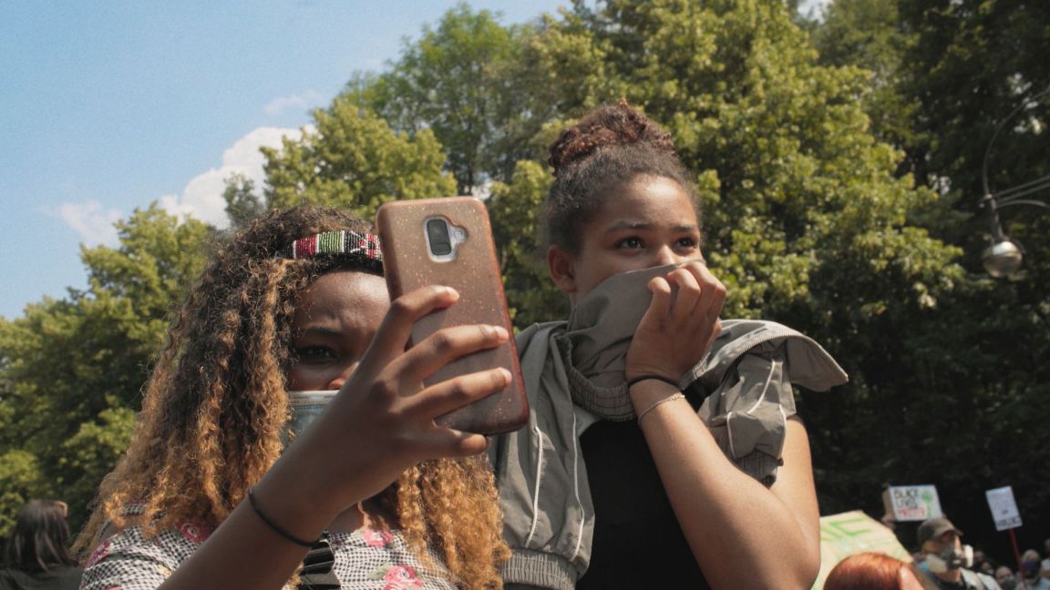 Und später im Film auf einer Demo fragt sich Jamila, warum die Polizei so rabiat durchgreift. Wobei die Demosituation ausschließlich aus Sicht der Mädchen und ohne Kontext abgebildet wird. Das scheint mir im Sinne des Narrativs stimmig, weil eine Politisierung von den Hauptcharakteren ablenken würde.