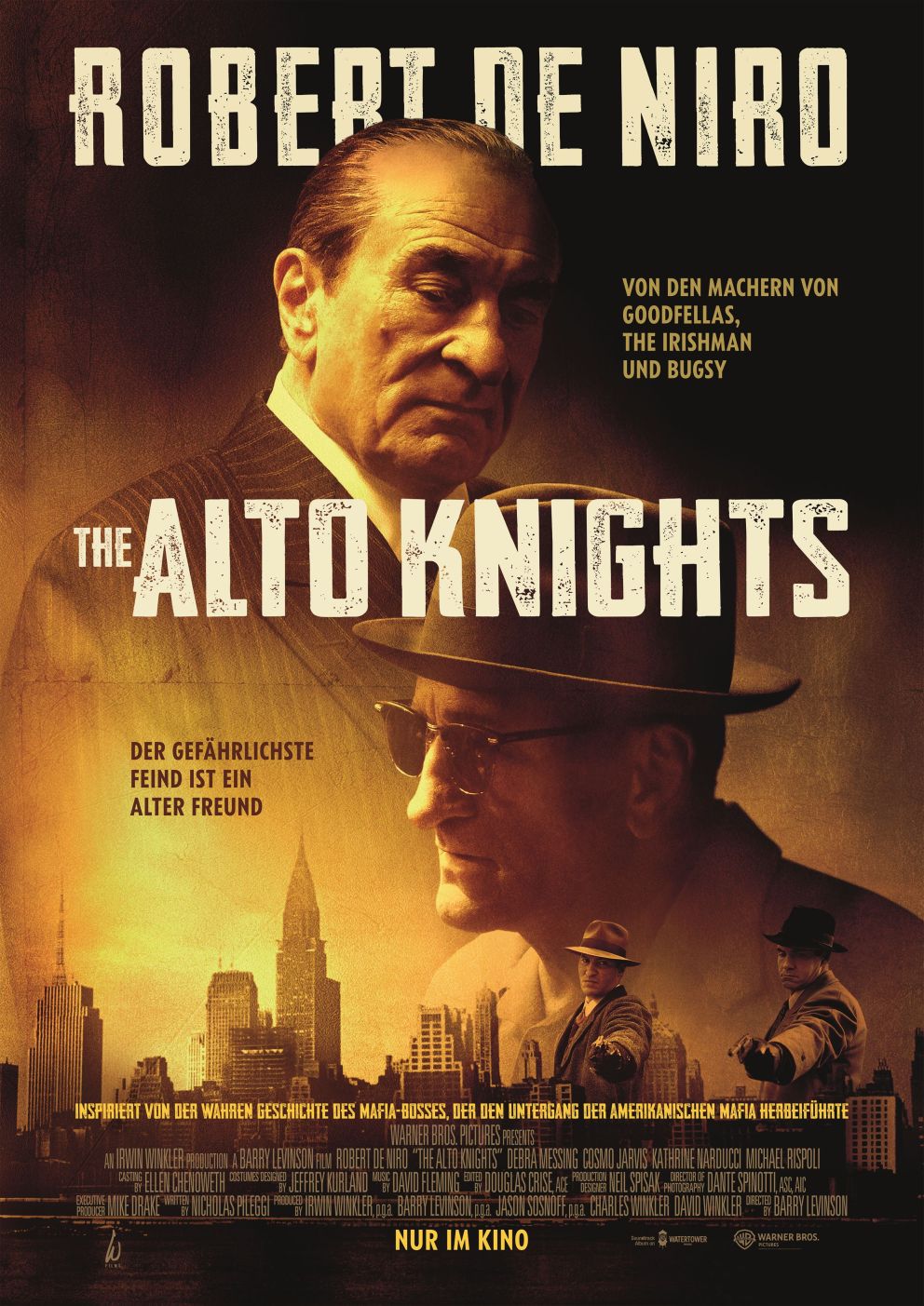 Es hilft dabei wenig, dass Robert DeNiro dabei auch noch den Part von Joe Pesci übernimmt, weil jener wie auch Al Pacino oder Chaz Palminteri nicht mehr vor der Kamera stehen. Die Doppelrolle für den Star ist sicherlich auch ein Argument für den Kinogang. Aber mal ehrlich, DeNiro, den ich sehr schätze, hat schon mal intensiver agiert als in „The Alto Knights“. Und Barry Levinson, der mit „The Natural“ („Der Unbeugsame“),„Good Morning, Vietnam“, „Rain Man“ und „Sleepers“ Fußabdrücke hinterlassen hat, durfte nun endlich auch einen Mafia Film drehen.