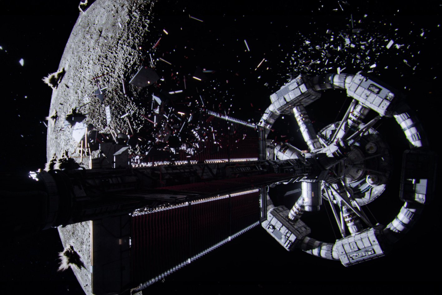 Als wäre das an sich nicht schon genug, ist „U Are The Universe“ in der Ukraine entstanden. Gefilmt wurde wohl bereits vor dem russischen Angriffskrieg, aber der Film war längst nicht fertig. So hat Filmmacher Pavlo Ostrikov mit seInem Projekt erstaunliche Ausdauer und auch Findigkeit bewiesen. Denn ebenso widrig wie die Umstände der Produktion war deren geringes Budget. Und dafür sind die Aufnahmen spektakulär, selbst wenn heute mit Künstlicher Intelligenz nachgeholfen werden kann (Wie etwa bei „The Brutalist“). Auch der siebzigerjahre Retro-Charme des Frachter-Inneren weiß zu überzeugen und versprüht den handgemachten Charme eines „Star Wars“ Bausatzes. Und dann kommt der Weltraumschrott geflogen. Das ist schon sehr schön.