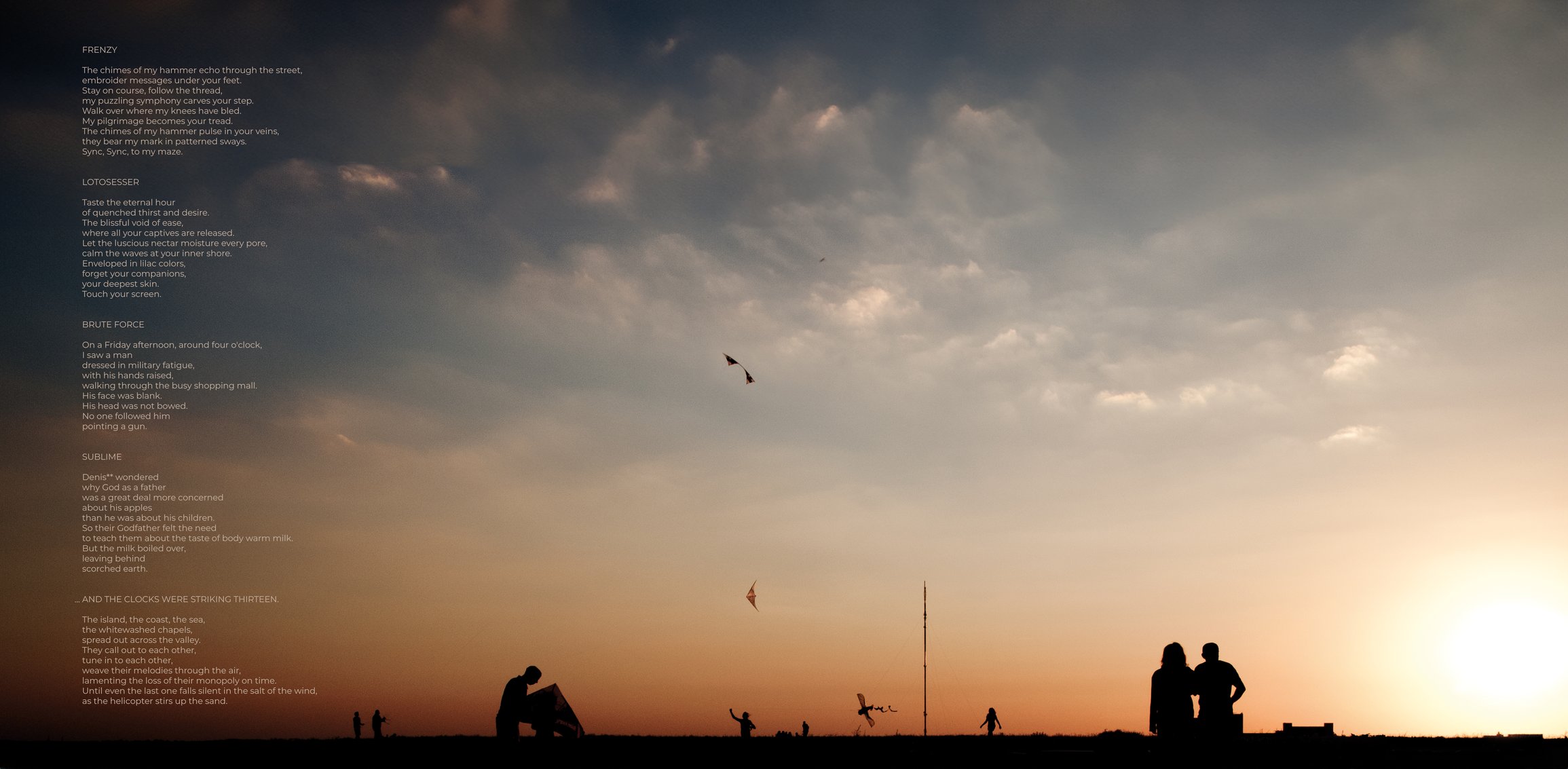 Mit rund 14 Minuten ist „Sublime“ der längste Song auf dem Album und möglicherweise das Herzstück der Angelegenheit. In dem zugehörigen Gedicht fragt sich Denis, warum Gott als Vater sich eher um seine Äpfel sorgt als um seine Kinder. Denis meint den Philosophen Denis Diderot, die Frage mag berechtigt sein, aber die erste Hälfte von „Sublime“ kreiert mit minimalistischem Ansatz atonale Atmosphäre.